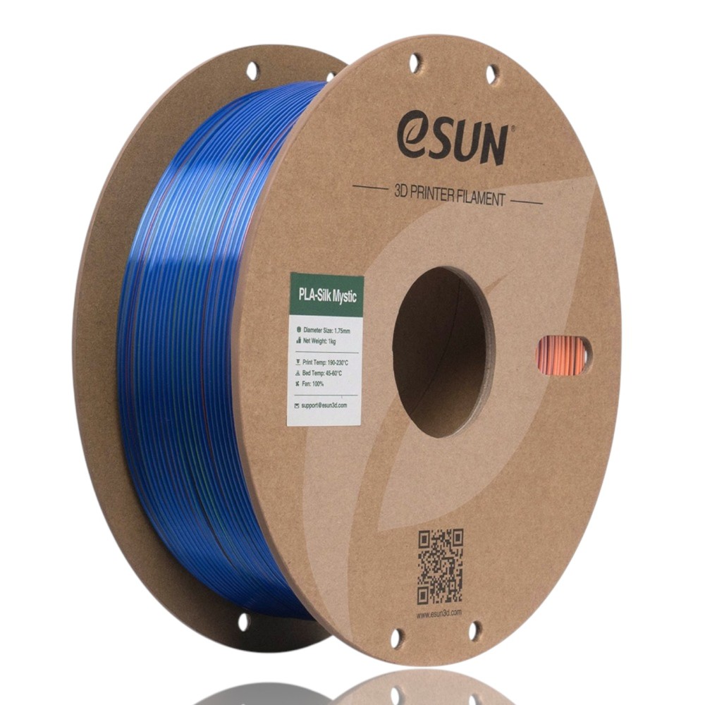 Três cores numa só linha — este filamento PLA de acabamento sedoso apresenta uma combinação de cores rica que confere ao modelo impresso um ar de mistério. É possível observar diferentes tons e variações conforme o ângulo, revelando toda a profundidade do efeito multicolorido deste filamento.