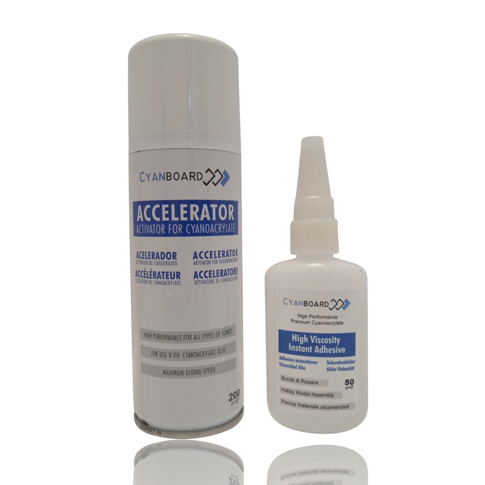 A cola de cianoacrilato de alta viscosidade da Cyanboard é um adesivo instantâneo de alta qualidade, recomendado para todos os tipos de materiais e especialmente formulado para uso em todos os tipos de hobbies, como modelagem, miniaturas e artesanato. É excelente para todos os tipos de reparos e materiais, incluindo plástico, metais, cerâmica, porcelana, madeira, couro e borracha.