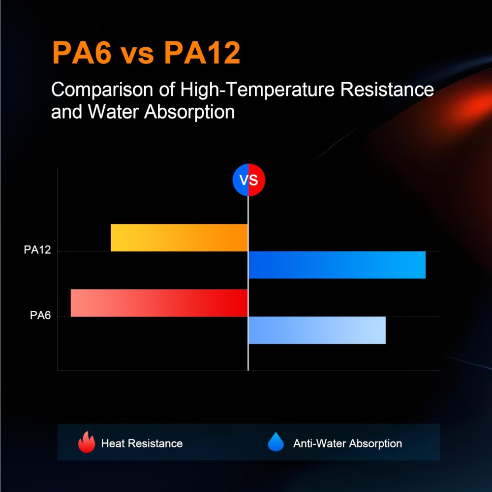 O Poliamida 6 (PA6) é um termoplástico com excelente resistência mecânica, resistência química, resistência ao calor e resistência ao impacto, apresentando também baixo empeno durante a impressão.