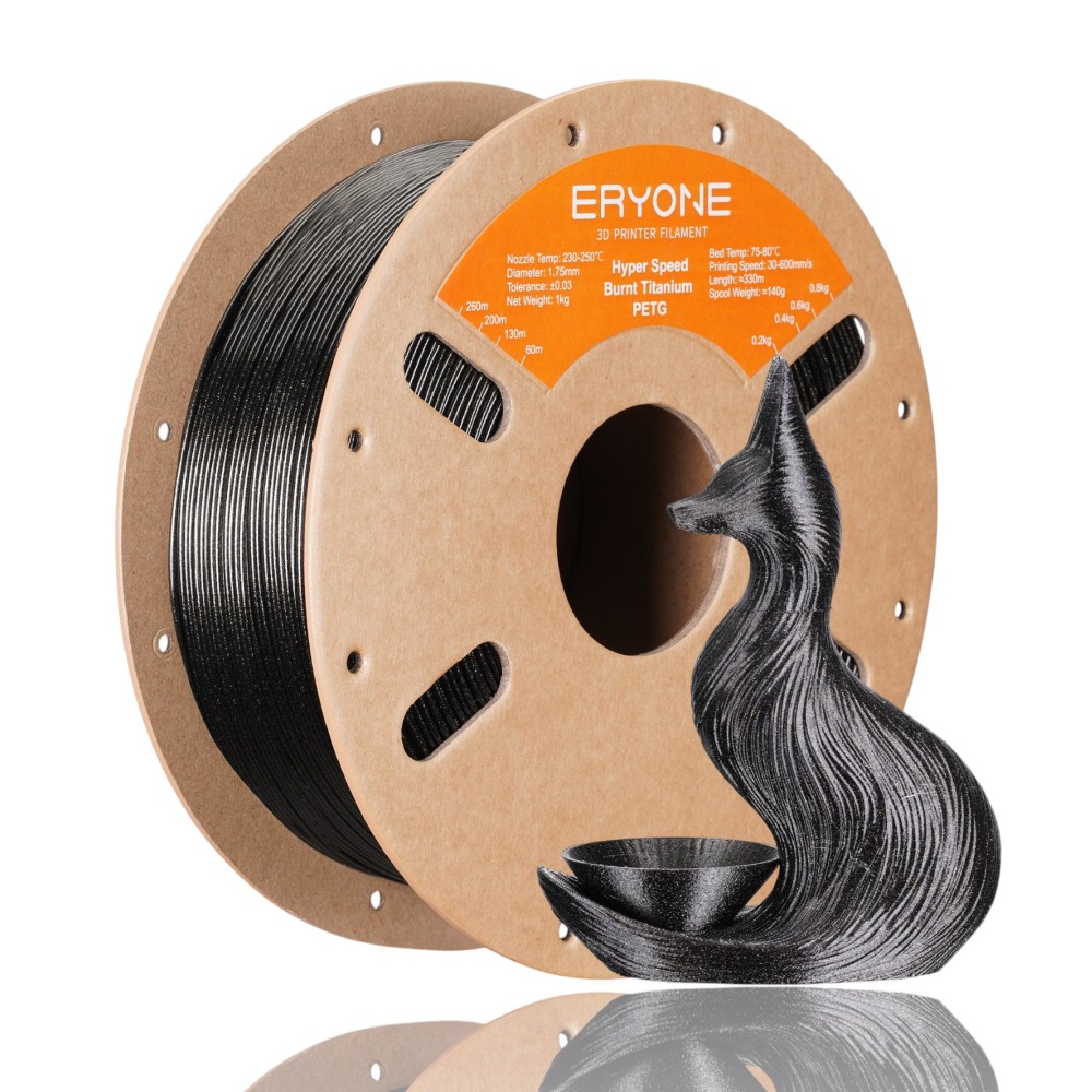 O filamento Eryone High Speed Burnt Titanium PETG é um material que supera os filamentos tradicionais à base de PLA com efeito Burnt Titanium.