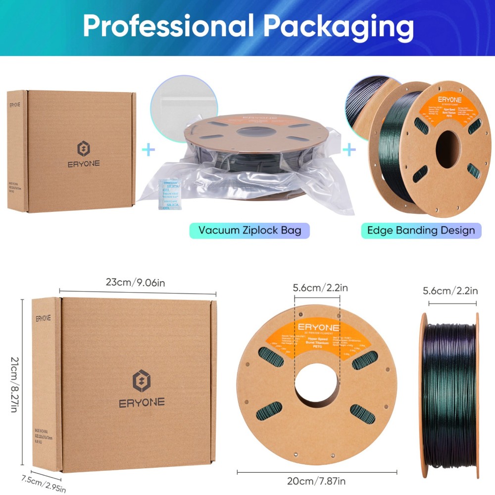 O filamento Eryone High Speed Burnt Titanium PETG é um material que supera os filamentos tradicionais à base de PLA com efeito Burnt Titanium.