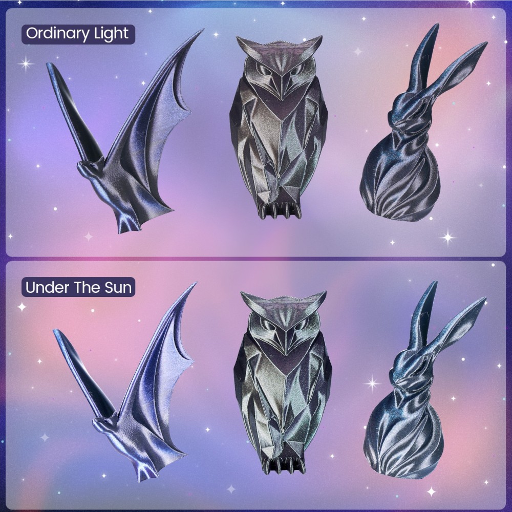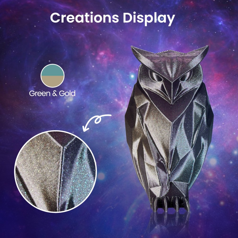 Este filamento oferece profundidade metálica deslumbrante, que muda conforme o ângulo de visão, perfeito para armaduras de cosplay, joalharia e modelos de exposição.