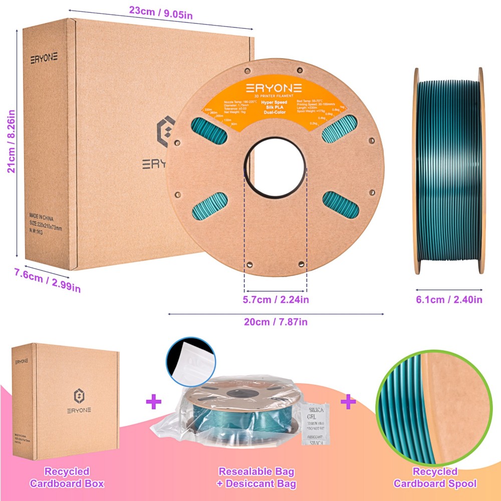 PLA High Speed Silk Dual-Color 1kg Emerald Green and Black - ERYONE