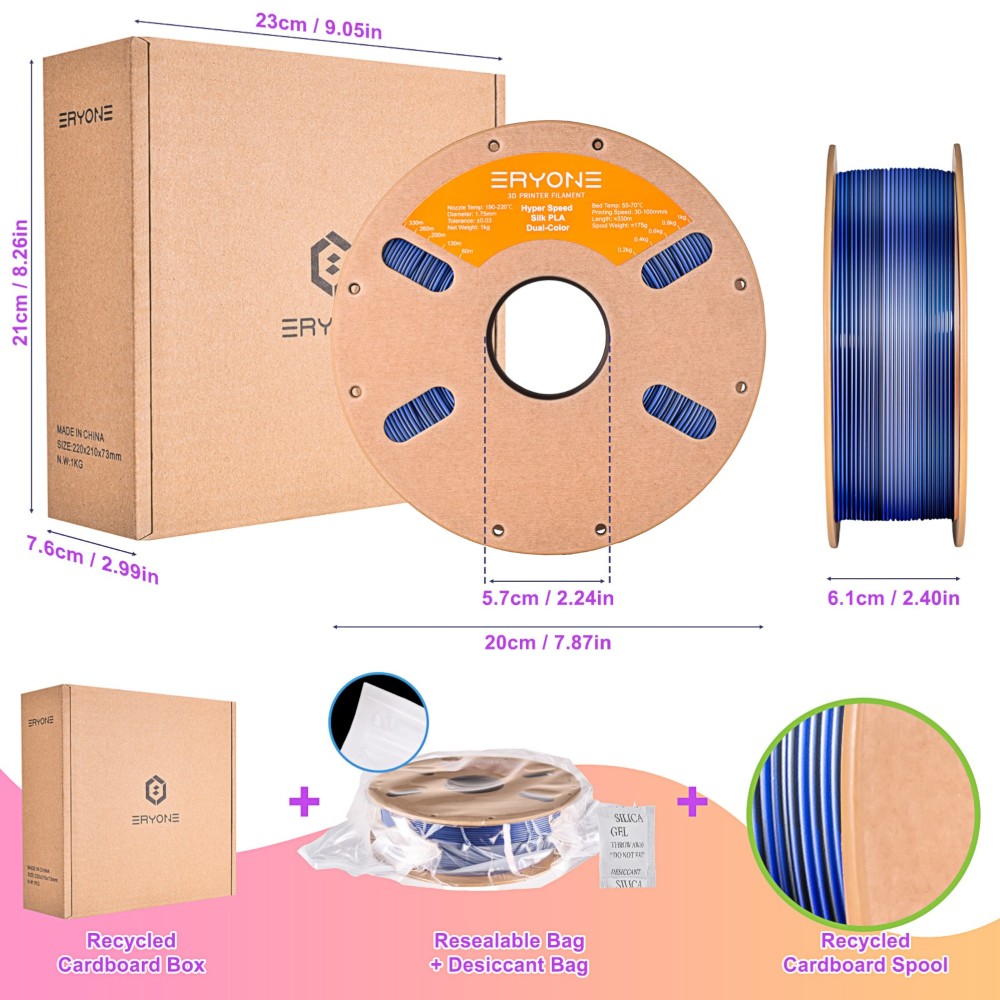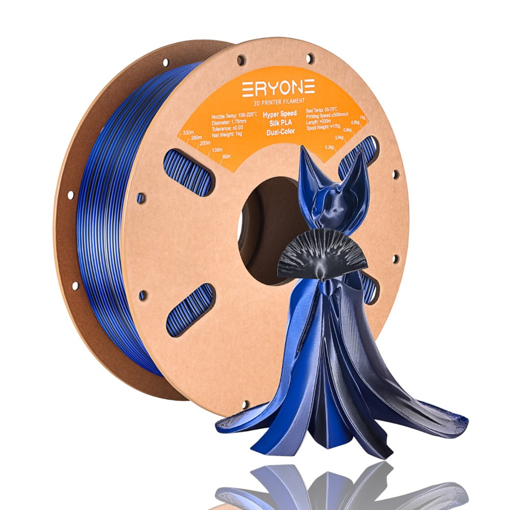 O filamento PLA Silk de Alta Velocidade Dual-Color é enrolado totalmente de forma mecânica, garantindo fios organizados e sem emaranhados.