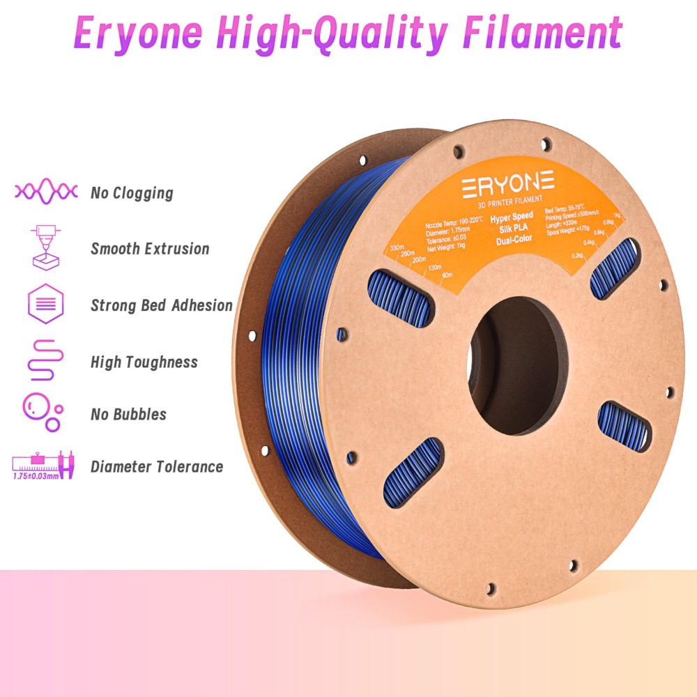 O filamento PLA de alta velocidade da ERYONE possui fluidez melhorada, permitindo que derreta rapidamente e flua de forma suave, alcançando velocidades de impressão até 500 mm/s.