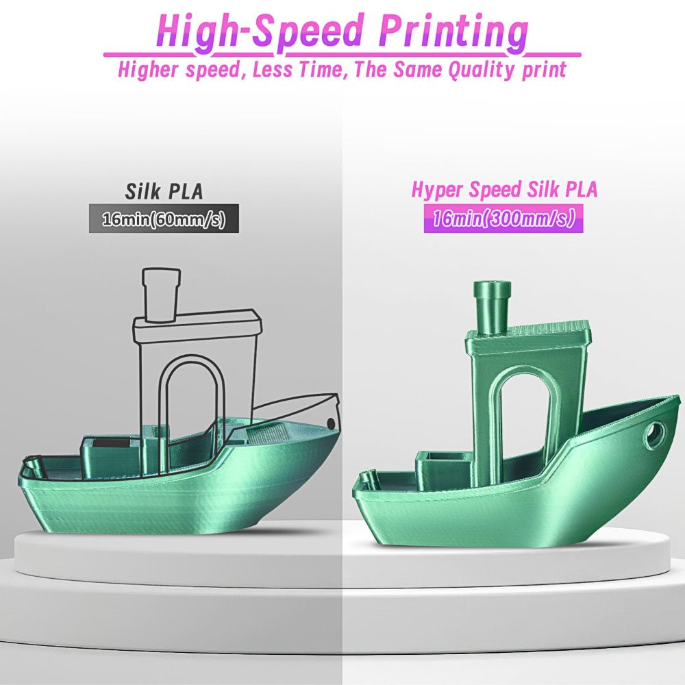 O filamento PLA de alta velocidade da ERYONE possui fluidez melhorada, permitindo que derreta rapidamente e flua de forma suave, alcançando velocidades de impressão até 500 mm/s.