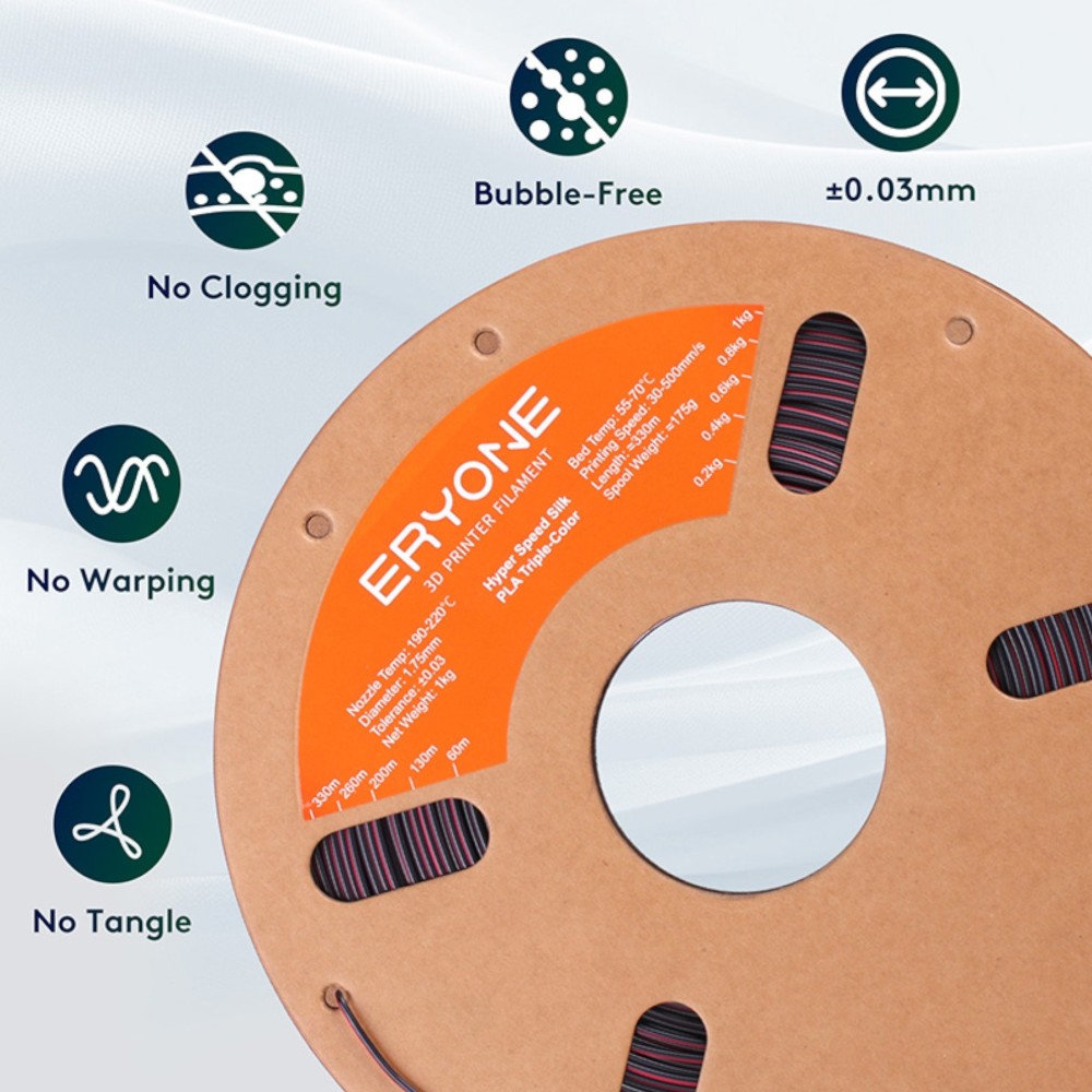 PLA High Speed Silk Tri-Color 1kg Black, Red and Gold - ERYONE
