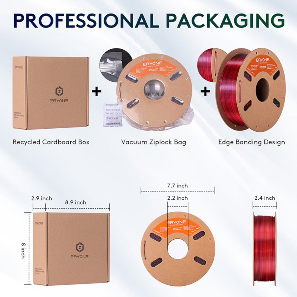 O filamento PLA da ERYONE destaca-se pelas suas características: