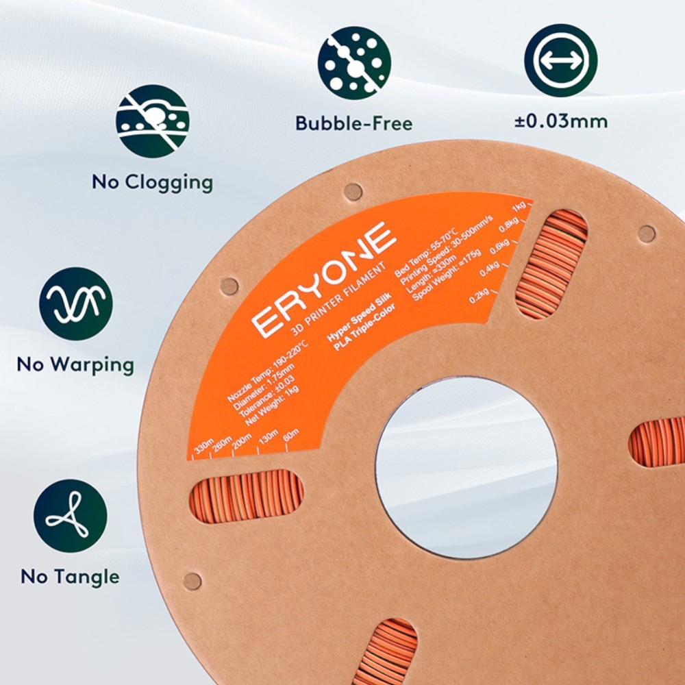 PLA High Speed Silk Tri-Color 1kg Orange, Blue and Green - ERYONE