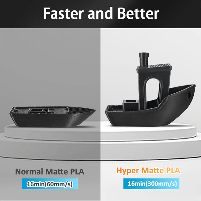 O filamento Eryone Hyper Speed Matte PLA produz peças com um delicado efeito mate, oferecendo uma textura suave e premium, com linhas de camada quase invisíveis.