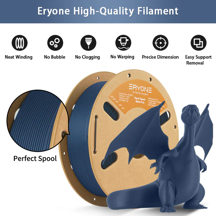O filamento premium PLA Mate de Alta Velocidade da Eryone foi desenvolvido para ser fácil de usar, respondendo às exigências de alto desempenho das impressoras 3D de alta velocidade.