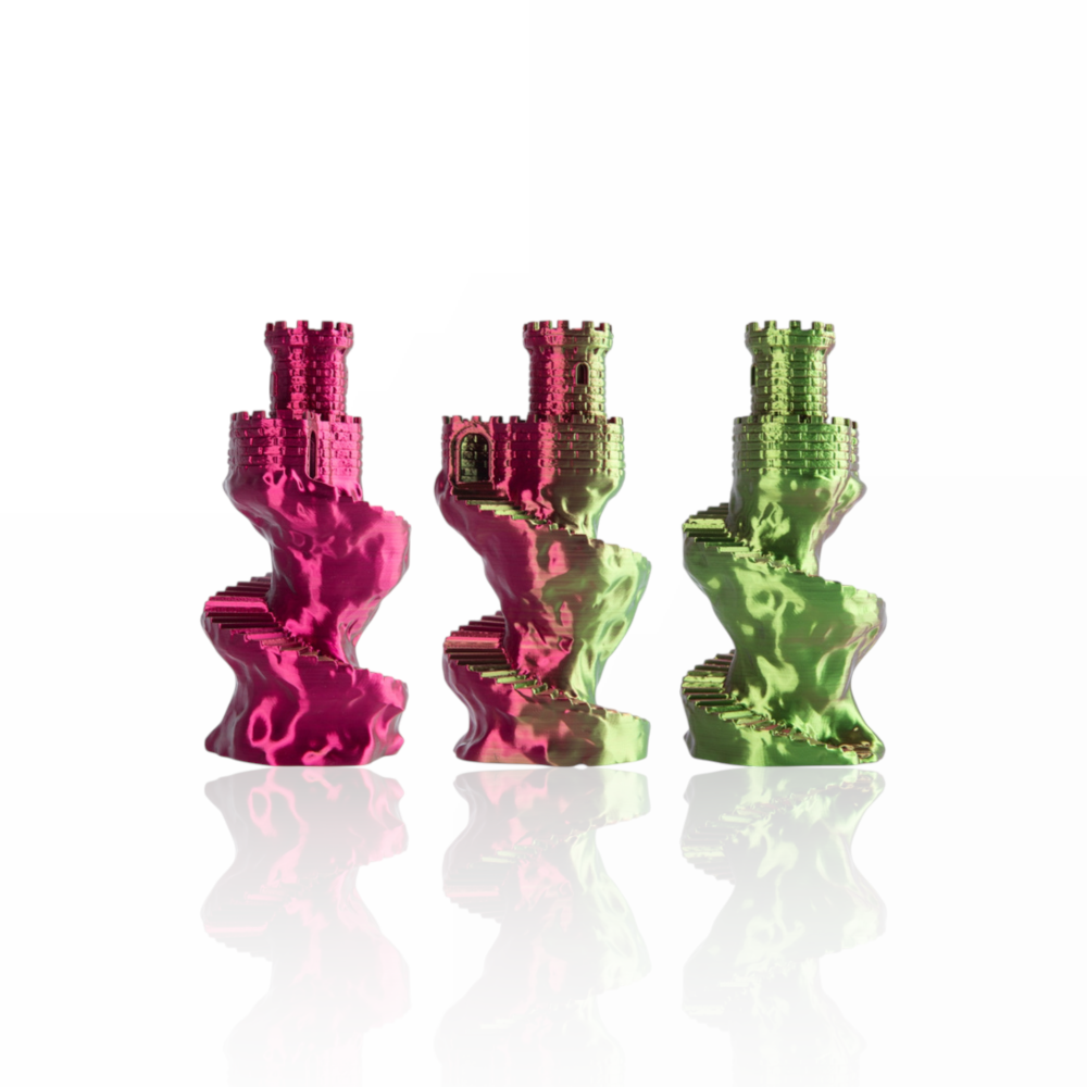 Magic SILK PLA é perfeito para aplicações como arte decorativa, design de interiores, projetos educacionais e prototipagem, onde a estética é tão importante quanto a funcionalidade. Aproveita este filamento para dar um toque de magia e cor aos teus projetos!