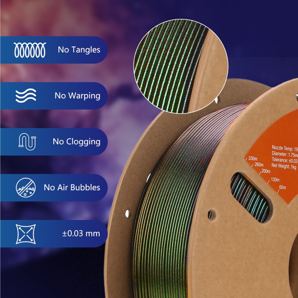 PLA Rainbow Burnt Titanium 1kg Wormhole (Green and Flash Black) - ERYONE