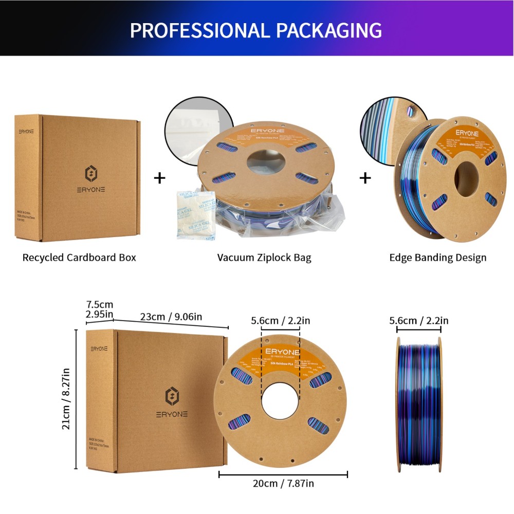 Os filamentos seda multicolor proporcionam um incrível efeito perolado, com uma superfície brilhante e elegante, resultando em impressões visualmente deslumbrantes.