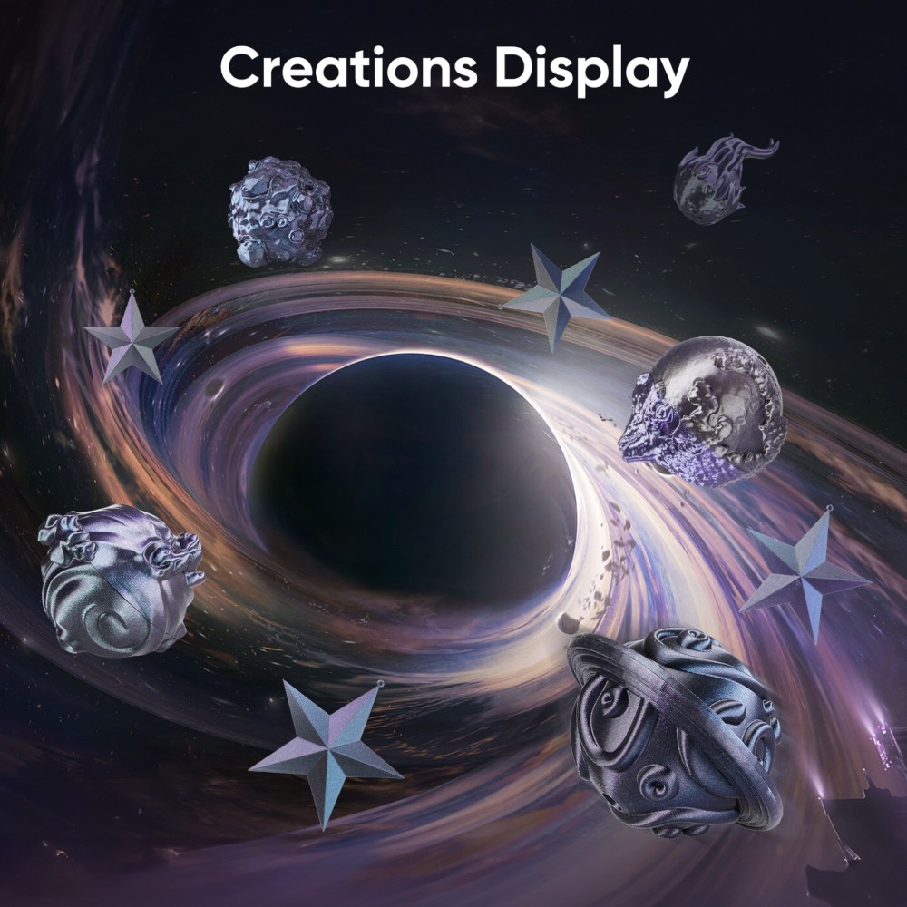 O filamento PLA Burnt Titanium Tri-Color muda de tons conforme a luz e o ângulo de visualização, criando efeitos visuais deslumbrantes que dão vida e movimento às suas impressões 3D.