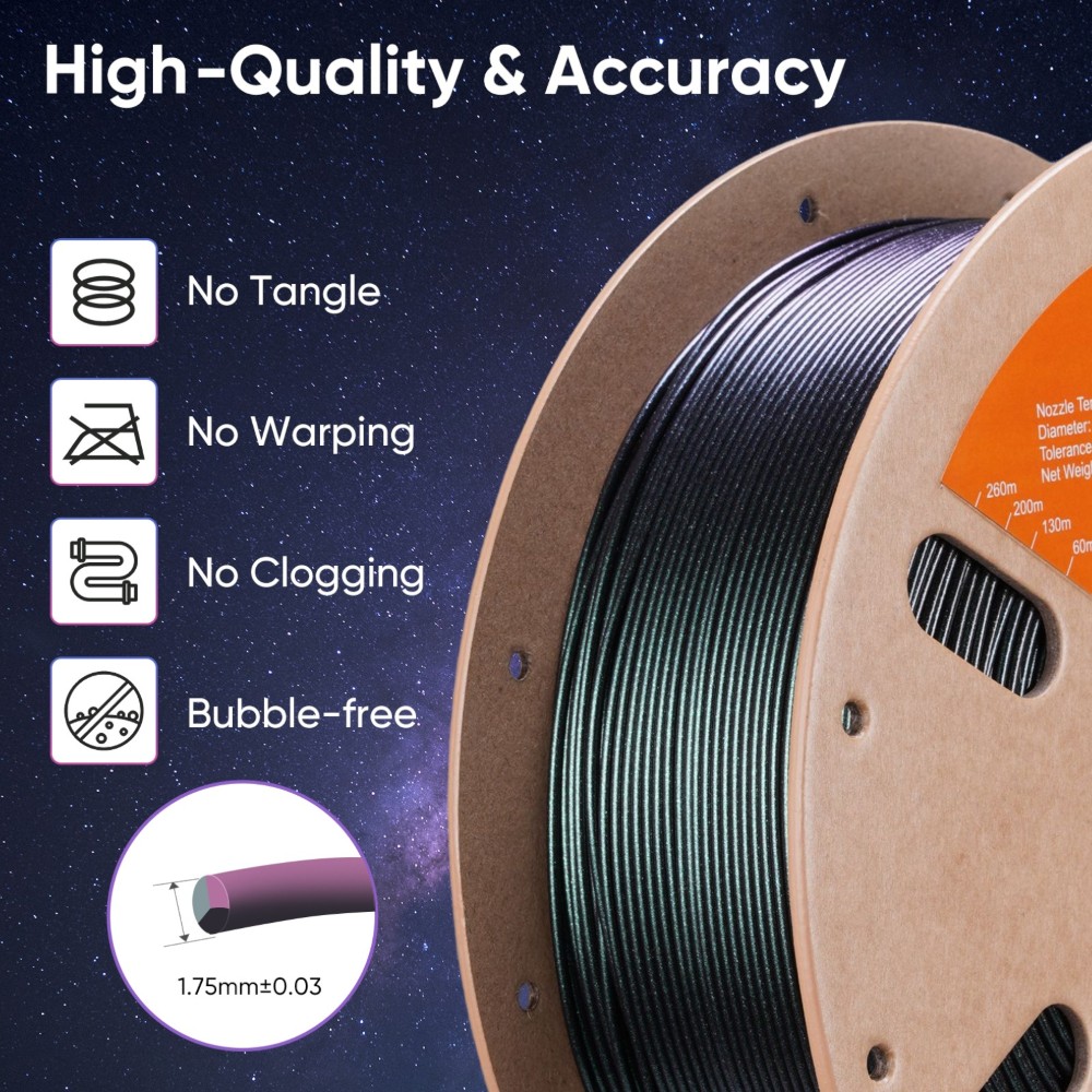 Este filamento oferece profundidade metálica impressionante, que muda de aparência consoante o ângulo, sendo perfeito para armaduras de cosplay, joalharia e modelos de exposição.