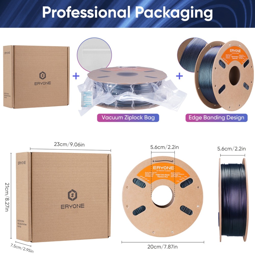 PLA Triple Color Burnt Titanium 1kg Blue, Black and Rose Red - ERYONE