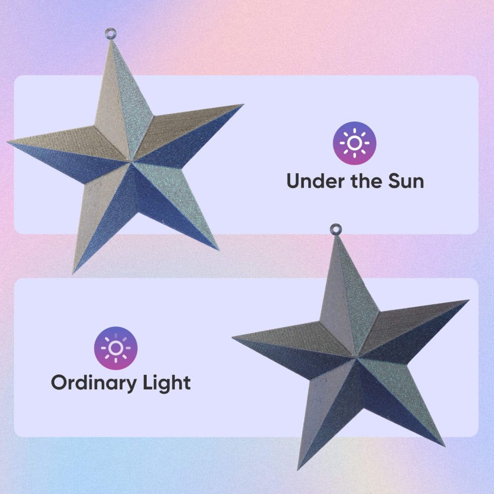 O filamento PLA Burnt Titanium Tri-Color muda de tons conforme a luz e o ângulo de visualização, criando efeitos visuais deslumbrantes que dão vida e movimento às suas impressões 3D.