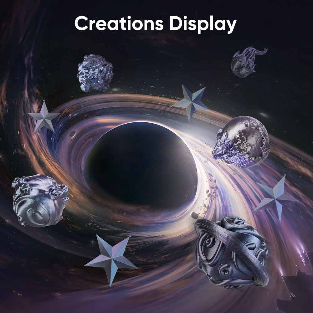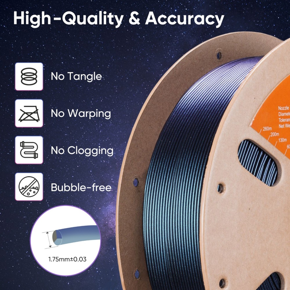 Este filamento oferece profundidade metálica impressionante, que muda de aparência consoante o ângulo, sendo perfeito para armaduras de cosplay, joalharia e modelos de exposição.