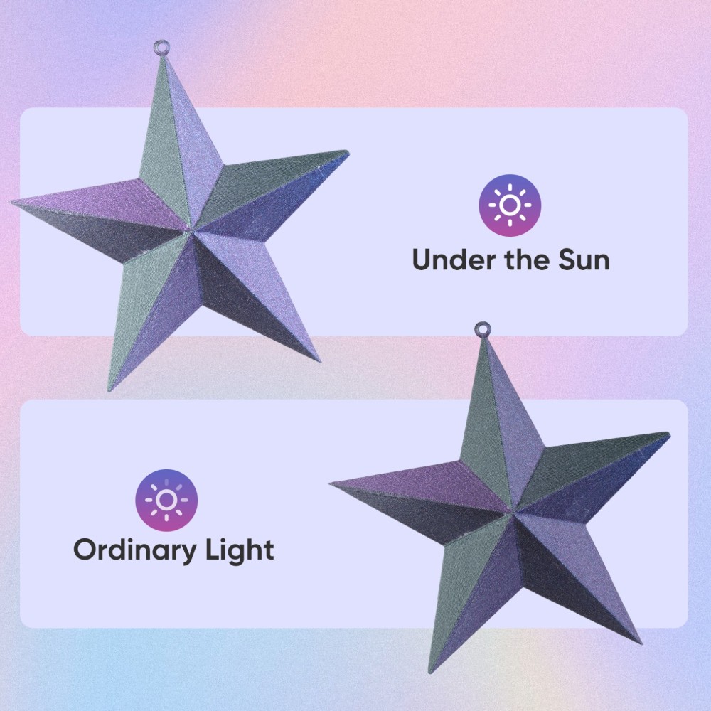 O filamento PLA Burnt Titanium Tri-Color muda de tons conforme a luz e o ângulo de visualização, criando efeitos visuais deslumbrantes que dão vida e movimento às suas impressões 3D.