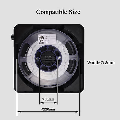 • Funciona para diferentes tipos e diâmetros de filamentos, compatível com 1,75mm, 2,85mm, 3,00mm de filamento 3D como Nylon, PLA, PVA, PC, TPU, PETG, PA, Madeira, ABS, Seda, etc. Espaço requintado permite a utilização de rolo único com bobina size:220x72mm Interior size:50mm, com eixo rotativo liso que permite a rotação contínua do filamento numa caixa quente seca para remover humidade.