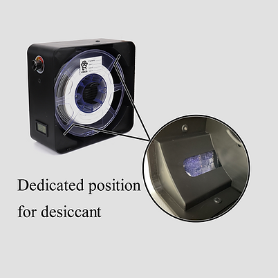 • A caixa de secagem é feita especificamente para a secagem de filamento de impressora 3D, destinada a remover a humidade de um carretel de filamento causado pela exposição ambiental. O filamento pode ser utilizado enquanto dentro da caixa, a função do secador funciona tanto como caixa de armazenamento como suporte do filamento. Também 2 ranhuras nos cantos foram concebidas para colocar dessecante,manter o filamento em condições de secagem mais longas,protecção selada, à prova de poeira e humidade,sem impurezas.