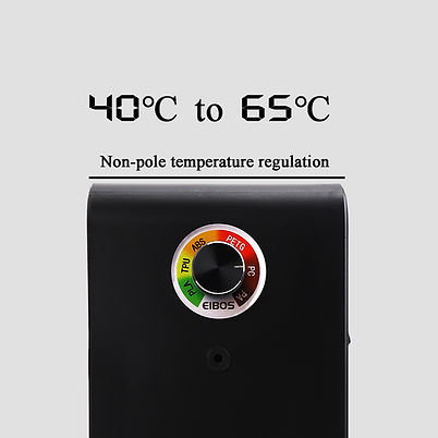• Com base no modo de temperatura de filamento diferente, pode ajustar a temperatura de aquecimento específica para acomodar as necessidades de vários filamentos, bastando rodar o botão de PLA para PA (40-65℃). Por favor, desdobre a temperatura aconselhada para definir o modo, caso contrário, o filamento será derretido.