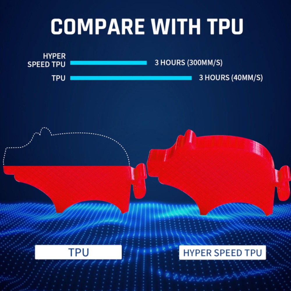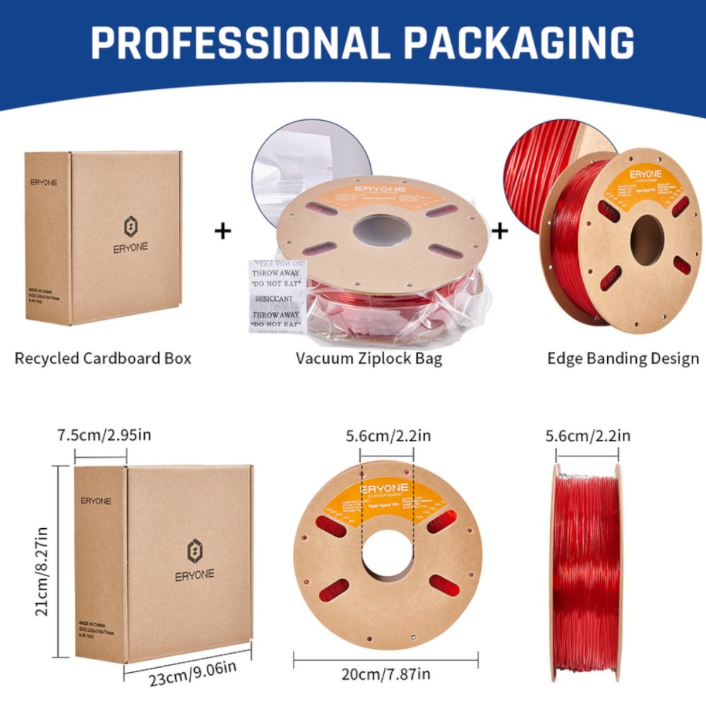 O filamento ERYONE TPU 1.75mm foi desenvolvido para impressão em alta velocidade, alcançando 30–300 mm/s, até 5 vezes mais rápido do que o TPU tradicional, proporcionando uma experiência de impressão 3D suave e eficiente.