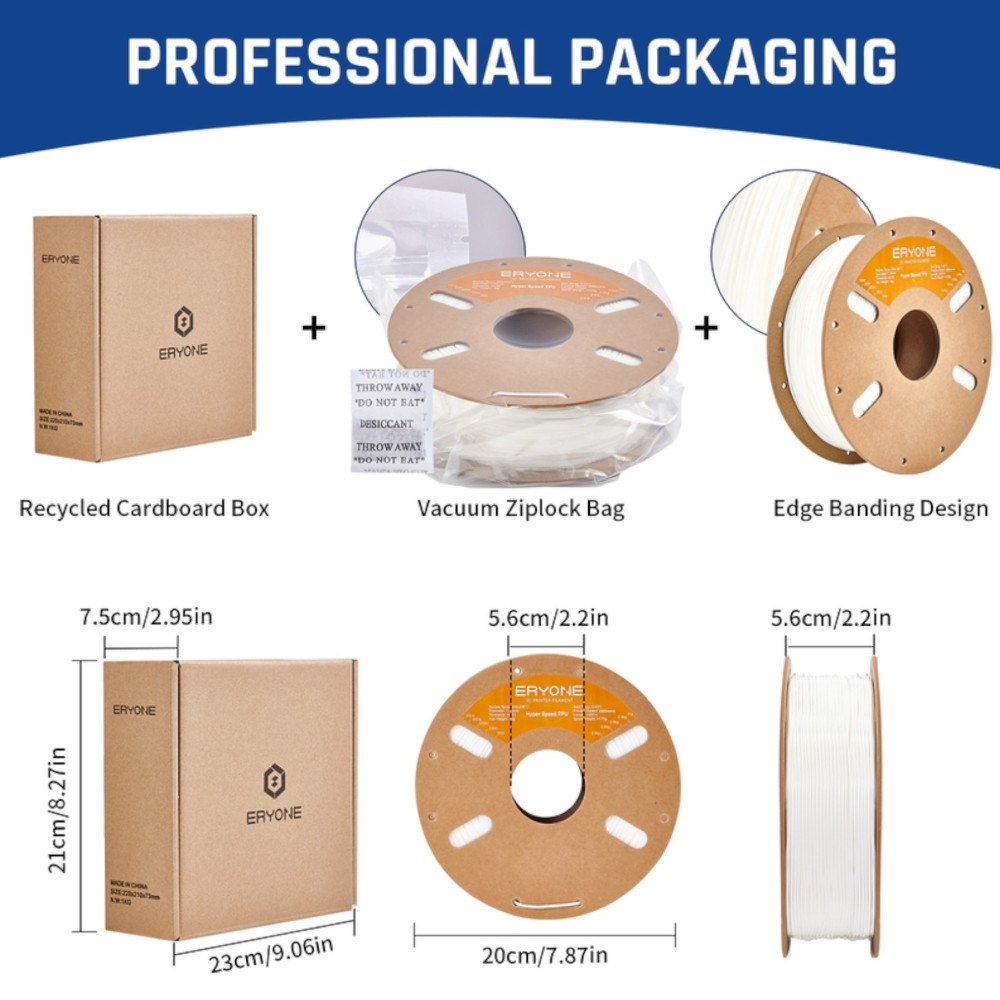 O nosso filamento flexível ERYONE TPU é um filamento à base de poliuretano termoplástico (TPU).